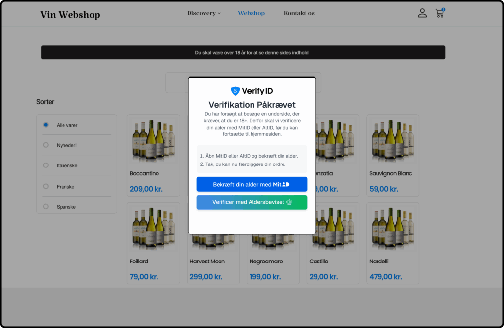 Aldersverifikation på undersider sikrer, at kun brugere, der opfylder alderskravene, kan få adgang til f.eks. /shop eller /alkohol. Resten af hjemmesiden forbliver frit tilgængelig, mens de aldersbegrænsede undersider forbliver lovlige og ansvarlige.