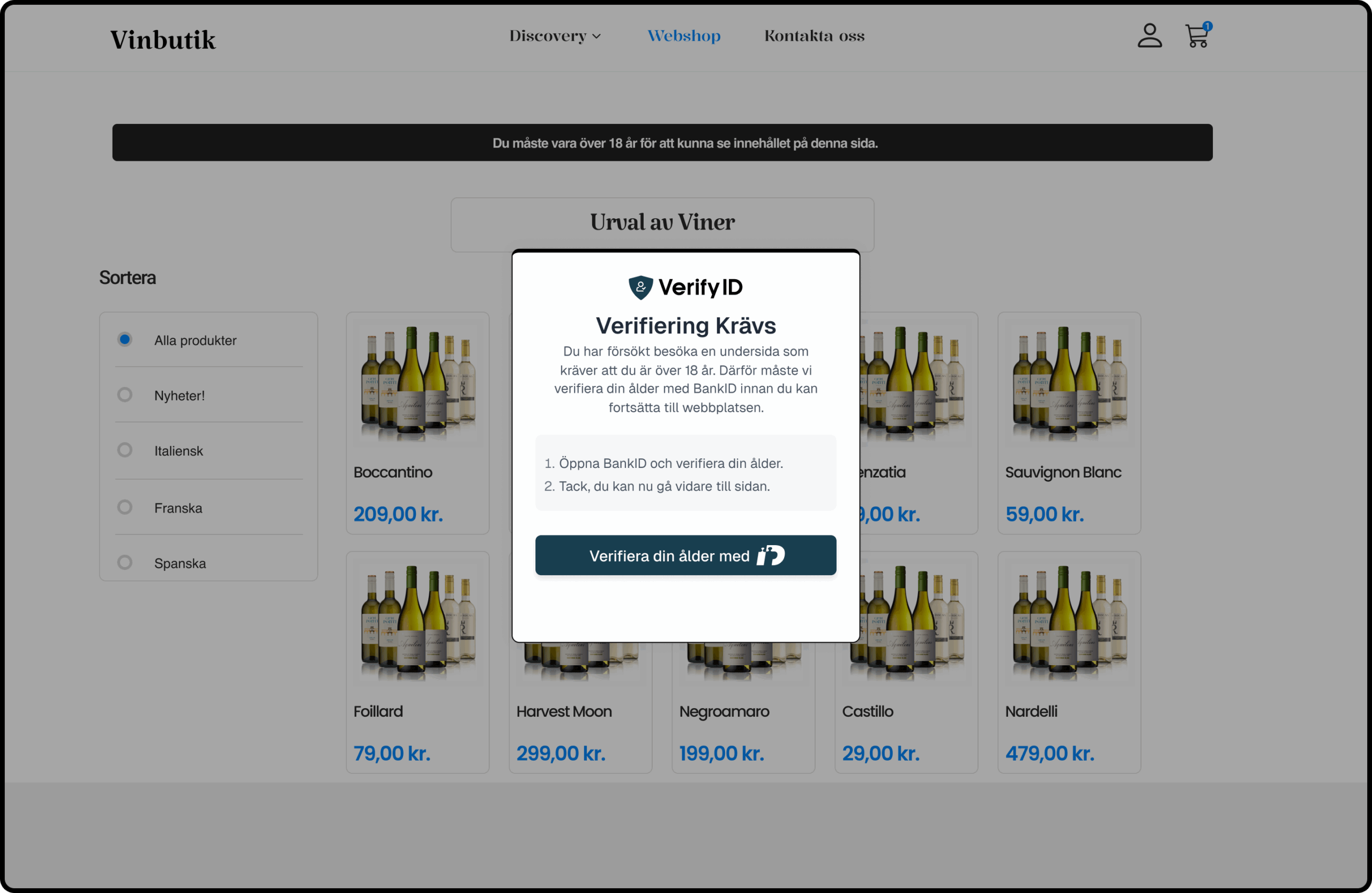 Med de nya kraven på ålderskontroll är det nu nödvändigt att säkerställa att kunderna uppfyller åldersgränserna för köp av produkter som tobak och alkohol. Din webbutik måste ha ett system som kan bekräfta kundernas ålder på ett exakt sätt.