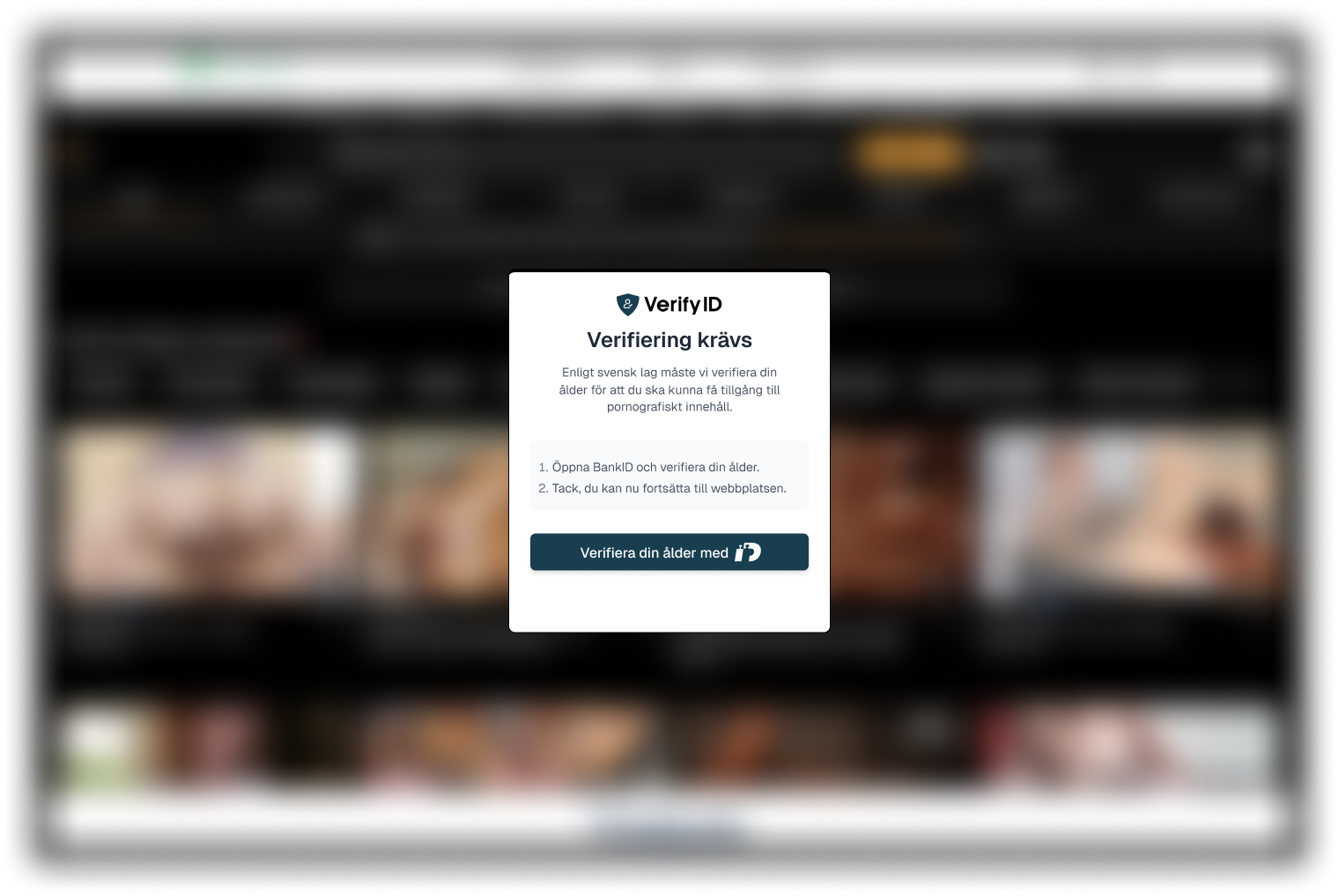 När besökare öppnar din sida möts de av en BankID-verifiering innan de kan se innehållet, så att endast myndiga användare får tillgång.